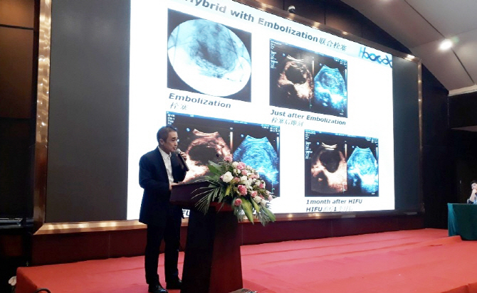김태희 원장은 지난달 30일 중국 쓰촨성 난충시(四川省 南充市)소재 텐라이호텔에서 열린 ‘쓰촨성 2019년 제1회 국제비침습학술대회’에 연자로 초청, 자궁근종 치료의 노하우에 대해 공개했다. 즉, 수술하지 않는 하이푸로 자궁근종 치료시 크기가 너무 큰 거대 자궁근종이나 혈류가 강해 치료가 어려울 경우 이를 해결 할 수 있는 방법에 대해 강연했다.