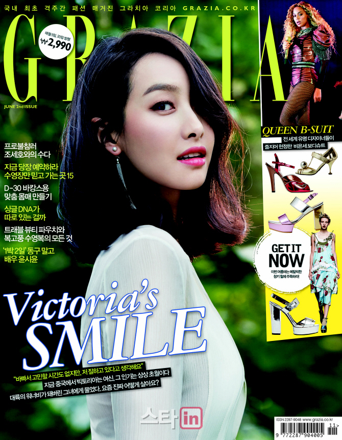 가장 바쁜 나날을 보내고 있는 동시에 가장 예쁜 나날을 보내고 있는 빅토리아. 현재 중국에서 다섯 번째 드라마 촬영을 진행 중인 그녀는 요즘 무슨 생각을 하며 지낼까? 그는 “지금 제 앞에 주어진 일에 열중하고 있어요. 여태까지 수고했고, 잘 해왔다고 스스로 격려도 하고 있죠. 앞으로 더 욕심 내서 가수와 연기자 활동 모든 분야에서 인정받고 싶어요”라고 전했다.