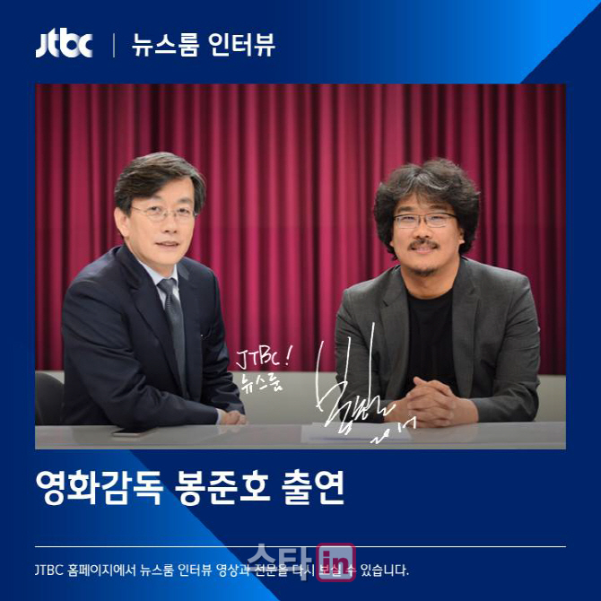 봉 감독은 손 앵커의 답에 “그 방송을 라이브로 봤는데 짜릿한 순간이었다”고 말했다. 손 앵커는 미소를 보이며 “고맙다”고 답했다.