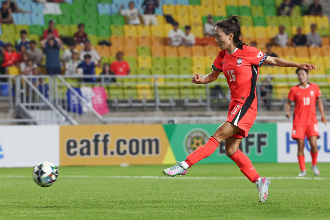 | | 9일 수원월드컵경기장에서 열린 2025 동아시아축구연맹(EAFF) E-1 챔피언십(동아시안컵) 여자부 대한민국 대 중국 경기. 장슬기가 동점골을 넣고 있다. 사진=연합뉴스 |