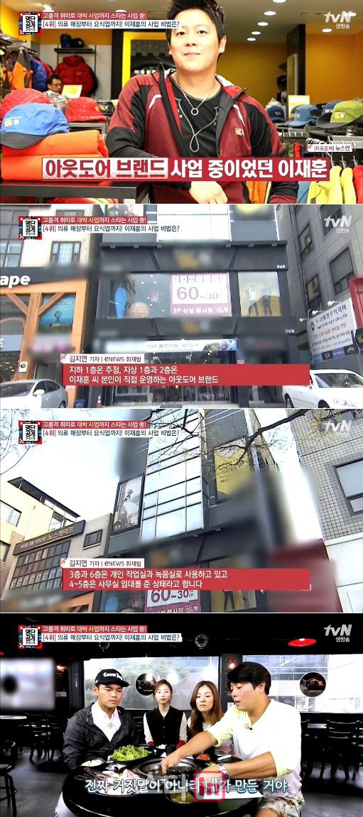 또한 이재훈은 아웃도어 브랜드 사업을 하고 있는 것으로 알려졌다. 그는 취미로 등산을 즐기던 중 아웃도업 브랜드 매장을 런칭했다고.