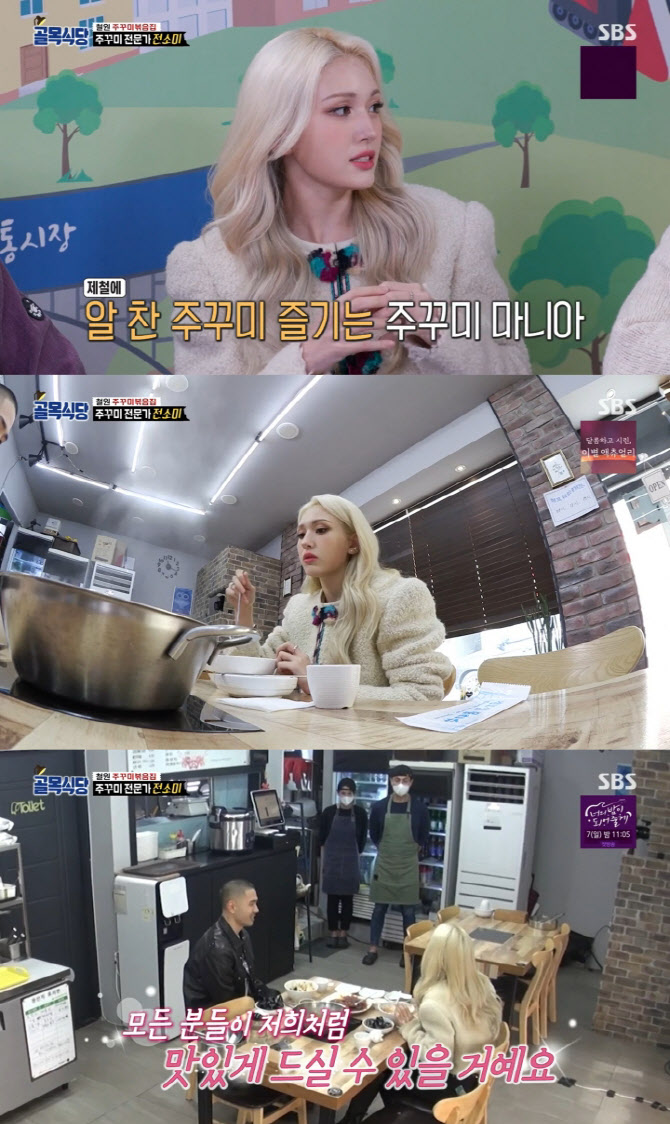 이날 전소미는 주꾸미 전문가로 ‘골목식당’을 찾았다. 전소미는 “노량진 수산시장에 혼자 가서 주꾸미를 먹고 온다”며 “주꾸미를 먹을 때는 꼭 생 김이랑 같이 먹는다”고 자신만의 특별한 ‘먹팁’을 공개했다.