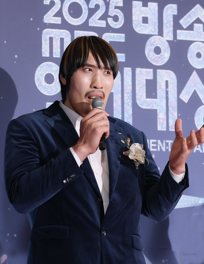 '전지적 참견 시점' 최홍만이 29일 오후 서울 마포구 MBC 미디어센터 공개홀에서 열린 '2025 MBC 방송연예대상' 레드카펫 행사에 참석해 인사말을 하고 있다.(사진=뉴스1)
