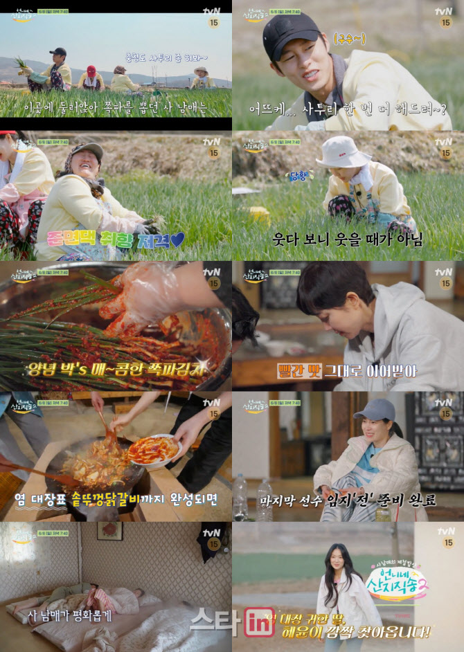 본격적인 밭일이 시작되자 염정아는 남다른 속도로 쪽파 뽑기 스킬을 발휘하며 에이스의 진면목을 보인다. 막내 이재욱은 “충청도 사투리 좀 혀봐”라는 염정아의 한 마디에 냅다 정체불명의 사투리를 쏟아내며 누나들을 배꼽 잡게 만든다.
