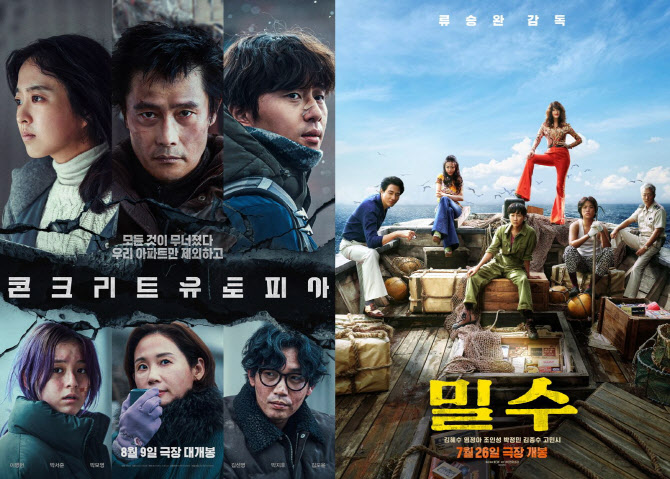 12일 오전 영화진흥위원회 영화관입장권 통합전산망에 따르면, ‘콘크리트 유토피아’(이하 ‘콘유’)는 개봉 첫 주말의 시작인 지난 11일 하루 25만 1037명을 동원해 재차 화제성을 입증했다. 누적 관객 수는 66만 7579명으로, 이르면 이날 늦은 밤 혹은 내일(13일) 중 100만 관객을 넘어설 수 있을 것으로 보인다. 실제로 이날 오전 사전 예매량만 23만 1118명(28.3%), 압도적 한국 영화 예매율 1위를 기록 중이다. 앞서 여름 한국영화 ‘빅4’(‘밀수’, ‘더 문’, ‘비공식작전’, ‘콘크리트 유토피아’) 첫주자로 나섰던 ‘밀수’가 개봉 첫 주 100만 명을 넘어선 바 있다. 최근 수년 간 개봉한 대작들을 평균적으로 살펴봤을 때 개봉 첫 주 100만 명은 넘겨야 손익분기점에 근접하거나 넘을 수 있다.