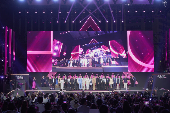 팬 이벤트에서는 황동혁 감독을 비롯해 이정재, 이병헌, 임시완, 강하늘, 위하준, 박규영, 이진욱, 박성훈, 양동근, 강애심, 조유리, 채국희, 이다윗, 노재원, 전석호부터, 시즌2의 최승현, 이서환, 원지안, 김법래, 김시은, 시즌1의 박해수, 정호연, 김주령, 아누팜 트리파티, 이유미까지, ‘오징어 게임’ 시즌1부터 시즌3를 대표하는 배우들이 총출동했다.