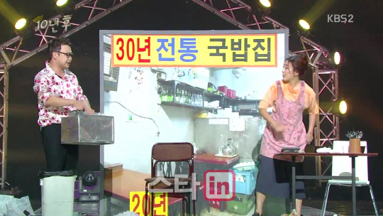 지난 5일 첫 선을 보인 <개그콘서트> '10년 후'에서 건달 권재관이 돈을 받아야 할 국밥 집 주인 허안나와의 채무관계도 10년이 흐른다면 로맨스 드라마 못지 않게 설레는 여심공략개그를 선보이며 화제가 되고 있다.