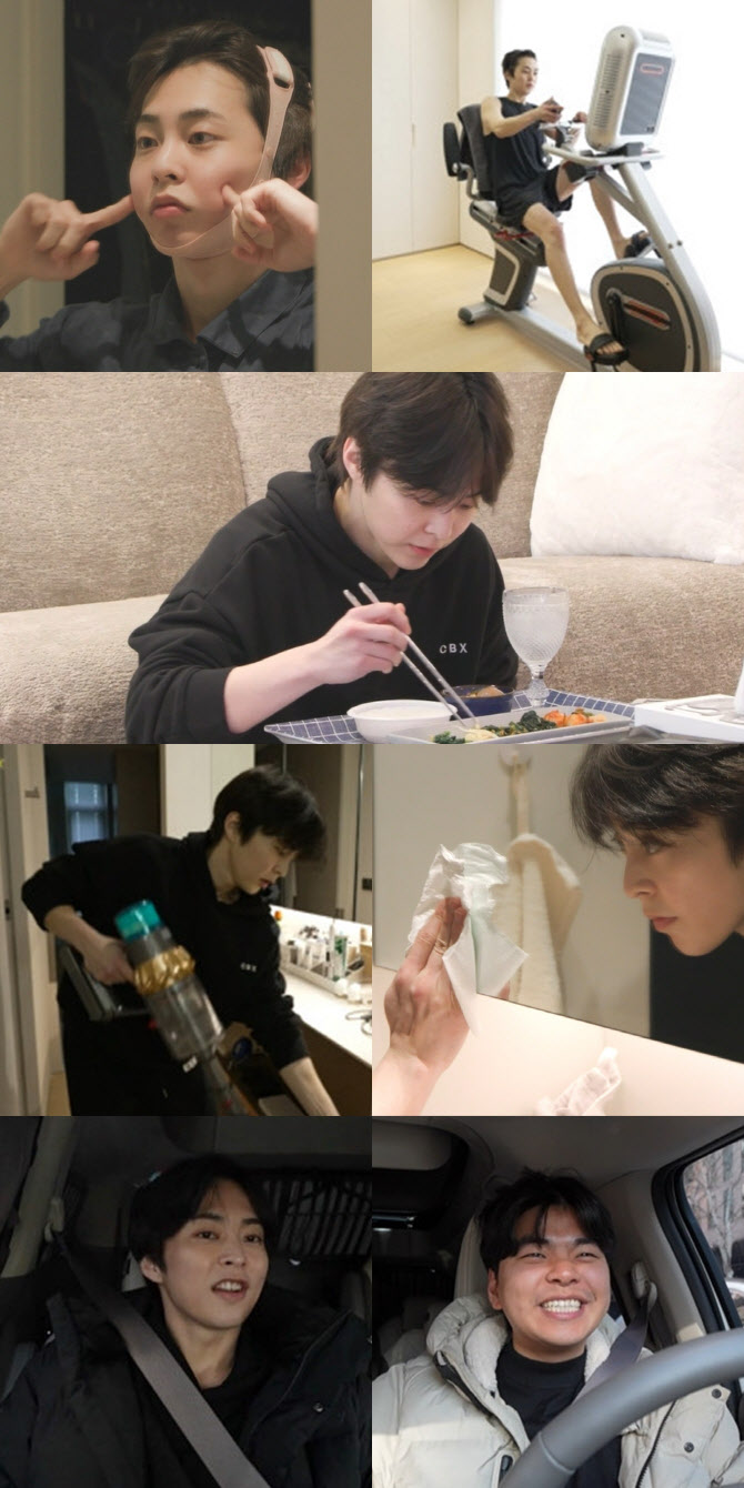 이어 하루를 시작한 시우민은 본인만의 모닝 루틴과 철저한 자기 관리법을 선보인다. 일어나자마자 얼굴에 부기 제거 밴드를 감아 간밤에 부은 얼굴을 관리하는가 하면 사이클과 노래 연습을 동시에 하는 고강도의 훈련을 선보이며 모두를 놀라게 했다는 전언이다.