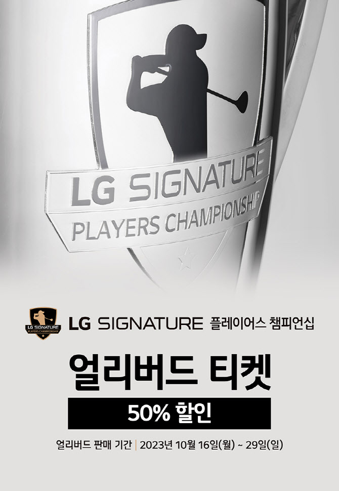 시즌 최종전으로 열리는 LG 시그니처 플레이어스 챔피언십은 오는 11월 9일부터 나흘 동안 경기도 파주시 서원밸리 컨트리클럽에서 열린다. KPGA 코리안투어는 오는 29일까지 공식 티켓 판매처 인터파크 티켓을 통해 50% 할인한 ‘얼리버드 티켓’을 판매한다.
