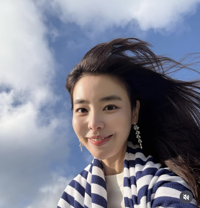 함께 올린 사진 속 김규리는 파란 하늘 아래에서 파란 카디건을 걸치고 있다.
