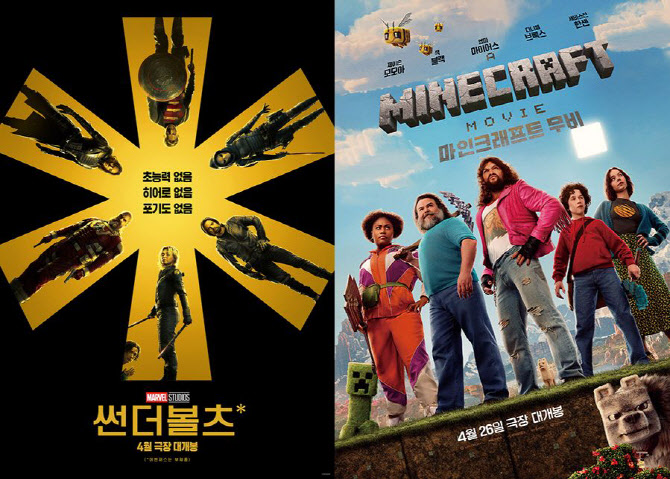 ‘썬더볼츠*’와 ‘마인크래프트 무비’는 마블시네마틱유니버스(MCU), 게임 ‘마인크래프트’ 등 지식재산권(IP)을 활용한 블록버스터다. ‘썬더볼츠*’는 초능력이 없는 안티히어로들이 어벤져스 대신 세상을 구하는 모험을 그린다. ‘마인크래프트 무비’는 할리우드 인기배우 잭 블랙의 출연과 함께 게임 속 세계관·캐릭터를 실사로 구현해 화제다.