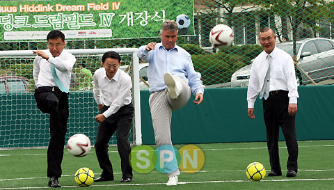 지난 1일에는 수원 소재 경기도 장애인 종합복지관에서 '히딩크 드림필드 III' 개장식에 참석했으며 어제(2일)는 전주에 위치한 전북도립 장애인 종합복지관에서 '히딩크 드림필드 IV'를 오픈했다. 이후에는 전북도청으로 건너가 도지사로부터 명예 전북도민증을 받고 행사 참가자들을 대상으로 '도민들의 대화' 이벤트를 진행했다.