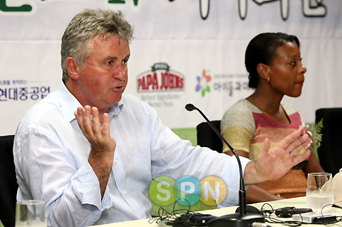 [이데일리 SPN 송지훈기자] 거스 히딩크 러시아대표팀 감독(63)의 내한은 언제나 한국인들의 이목을 집중시키는 특별한 이벤트다. 2002한일월드컵 4강 신화를 굳이 들먹일 것도 없다. 지금 한국인들에게 히딩크 감독은 7년 전 추억 속의 연인이 아니다. 같은 시대를 살며 함께 호흡하는 '현재형 친구'다. 히딩크 감독이 2003년 네덜란드 아인트호벤에 '거스 히딩크 재단'을 설립하고 꾸준히 한국인들을 위해 선행을 베풀고 있는 것 또한 '한국인들과의 친밀감'이 가장 큰 이유가 됐다.
