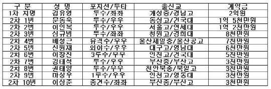1차 지명인 경남고 김유영은 2억원, 2차 1번 지명인 건국대 문동욱은 1억 5천만원에 각각 도장을 찍었다.