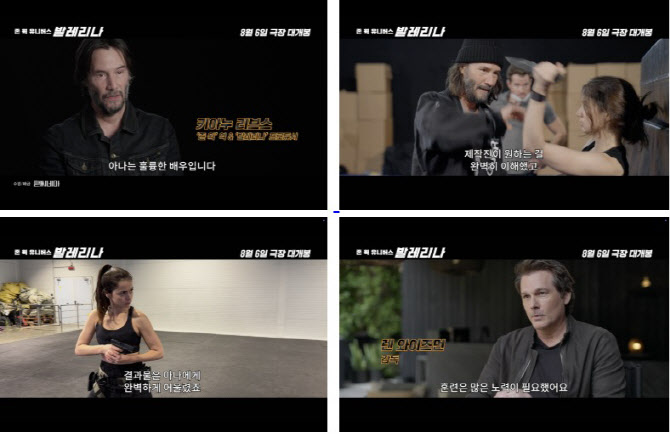 이번에 공개된 ‘존 윅 액션 코멘터리’ 영상에서는 암살자의 세계로 들어서는 새로운 킬러 ‘이브’ 역을 완벽하게 소화한 아나 데 아르마스를 향한 제작진과 키아누 리브스의 찬사가 담겼다. 아나 데 아르마스는 ‘발레리나’에서 어릴 적 살해당한 아버지의 복수를 꿈꾸며 발레리나 겸 킬러로 성장한 ‘이브’ 역을 맡아 ‘존 윅’의 뒤를 잇는 잔혹한 복수를 선보인다. ‘존 윅’ 역으로 ‘발레리나’에 출연할 뿐만 아니라, 프로듀서로도 참여한 배우 키아누 리브스는 아나 데 아르마스를 “훌륭한 배우”라고 말하며 “재능 넘치고 못 하는 게 없다”라고 극찬했다. ‘존 윅’의 전 시리즈를 연출하고 ‘발레리나’의 프로듀서로 참여해 ‘존 윅 유니버스’를 확장한 채드 스타헬스키 역시 아나 데 아르마스의 탁월한 액션에 박수를 보냈다. 채드 스타헬스키는 “훈련에 전념하는 아나가 인상적이었다. 제작진이 원하는 걸 완벽히 이해했고 ‘존 윅’ 세계관에 새로운 관점을 부여했다” 라고 평하며, ‘존 윅’ 세계관의 오리지널리티를 계승하면서 ‘발레리나’만의 차별화된 액션을 만들어낸 아나 데 아르마스를 향한 찬사를 보냈다. ‘발레리나’의 연출을 맡은 렌 와이즈먼 감독 역시 아나 데 아르마스가 이제 막 킬러의 길에 들어서 더욱 힘들 수밖에 없는 캐릭터 ‘이브’의 액션을 소화하기 위해 훈련에 많은 노력을 기울여야 했다고 전하며 “촬영장에서 아나가 멍과 상처들을 보여줬고 마치 훈장처럼 느껴졌다”라는 비하인드를 밝혔다. 또한, 렌 와이즈먼 감독은 모든 종류의 총기류는 물론이고, 칼, 스케이트 날, 화염방사기 등 다양한 도구와 무기를 자유자재로 활용하는 주인공 ‘이브’를 “살아남으려고 모든 것을 사용해서 무기로 만들고 활용”하는 캐릭터라고 소개했다. 이어서 ‘발레리나’의 주요 액션씬을 진두지휘한 채드 스타헬스키 역시 “현실감 넘치는 액션의 아름다움을 담으려 했다”라며 “아나 같은 배우가 있으면 한계가 없다” 라고 아나 데 아르마스를 향한 고마움을 드러냈다. ‘존 윅’에 버금가는 높은 난도의 액션을 소화한 아나 데 아르마스는 “스스로를 단련하면 목표에 닿을 것 같았다”라며 “(나는) 슈퍼히어로를 연기하는 게 아니다. 육체적으로 고통스러운 과정이지만 많은 영감을 얻었다”라고 ‘발레리나’에 출연한 소감을 전했다. 아나 데 아르마스와 함께 일 대 일 액션씬을 촬영하며 호흡을 맞춘 키아누 리브스 또한 “아나가 다음 단계로 올라서는 걸 보는 건 정말 멋졌다. 아나는 늘 “자, 해봅시다!”라는 태도로 임했다”라고 전해 ‘발레리나’에서 아나 데 아르마스가 펼칠 강렬한 액션에 대한 기대를 높였다.