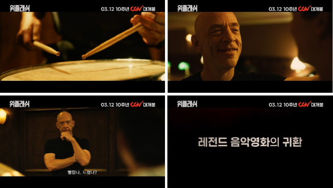 ‘위플래쉬’는 최고의 드러머를 꿈꾸는 학생 앤드류와 완벽을 추구하는 교수 플레쳐가 펼치는 집념과 광기를 그린 레전드 음악영화다. ‘위플래쉬’가 10주년 기념 예고편을 최초 공개했다.