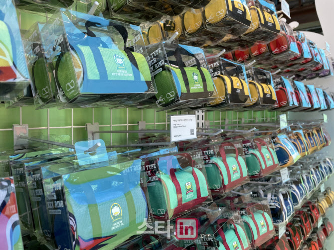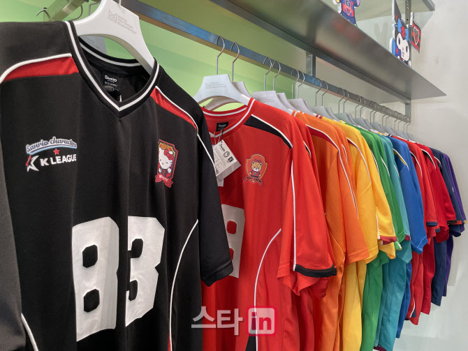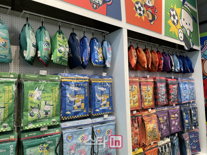 | | 24일 서울 무신사 스토어 성수@대림창고에서 열린 ‘K리그X산리오캐릭터즈’ 팝업 스토어에 진열된 상품. 사진=허윤수 기자 |