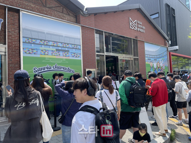 | | 24일 서울 무신사 스토어 성수@대림창고에서 열린 ‘K리그X산리오캐릭터즈’ 팝업 스토어 입장을 기다리는 방문객의 모습. 사진=허윤수 기자 |
