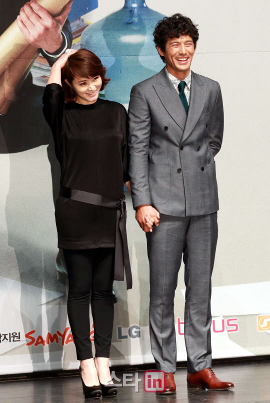 [이데일리 스타in 한대욱 기자] 배우 김혜수(왼쪽)와 오지호가 25일 오후 서울 대현동 이화여자대학교 삼성홀에서 열린 KBS 2TV 새 월화미니시리즈 '직장의 신'(극본 윤난중, 연출 전창근, 노상훈) 제작발표회에서 포토타임을 갖고 있다.