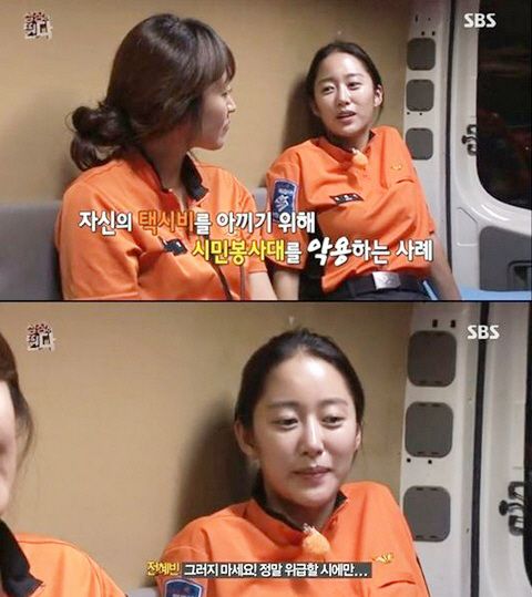 한 소방대원은 “거동이 불편하다는 할머니 제보를 받고 구급차에 태워 병원에 보내드렸는데 1분 후 멀쩡하게 걸어 나와 시장을 갔다”며 “시장에 가려고 꾀병을 부려 신고를 한 것이었다”는 황당한 사건을 전했다. 당시 전혜빈은 “그러지 마세요. 정말 위급할 시에만 (이용해주세요)”라고 지적했다.