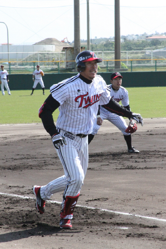 [이데일리 스타in 박은별 기자]15일 일본 오키나와 이시카와구장에서 진행되고 있는 LG의 스프링캠프. 외야수 이병규(9번)가 주루 연습에 한창이다. LG는 16일 일본 프로야구 주니치와의 연습경기를 시작으로 8번의 연습경기를 더 치른 뒤 3월5일 귀국할 예정이다. 사진=LG트윈스