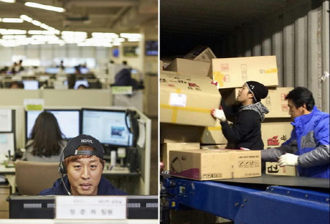 | 전화응대 업무를 하는 정준하와 택배 아르바이ㅡ를 하는 하하의 모습(사진=무한도전 공식 트위터) |
