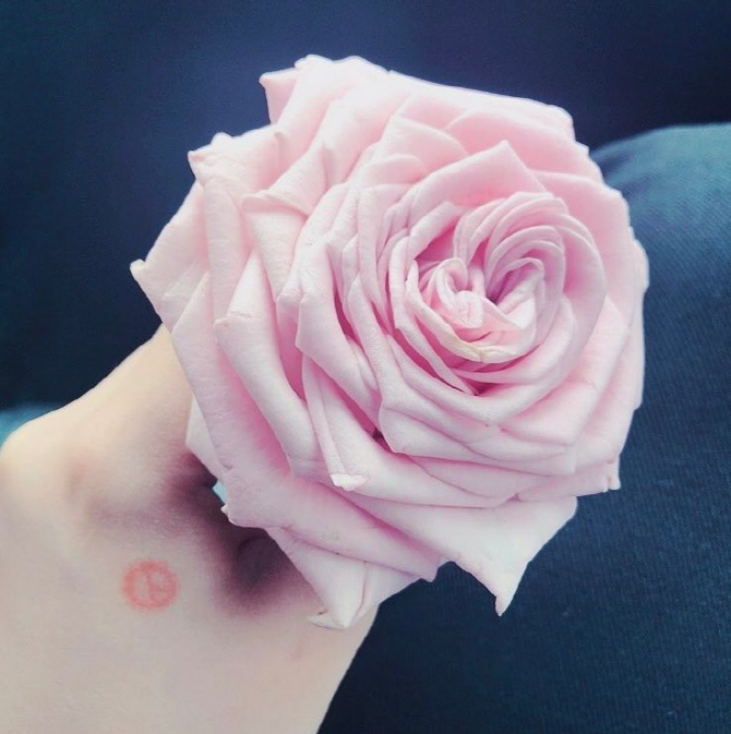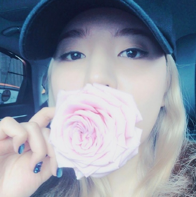써니는 이어 장미꽃을 입에 물고 있는 사진도 SNS에 남겼다.