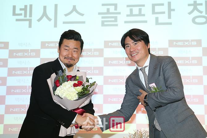 28일 국내 메이저 주방가구회사 넥시스(대표 최민호)가 서울 역삼동에 위치한 넥시스 갤러리에서 KLPGA 박유나(30)를 비롯한 6명의 여자프로골퍼로 구성된 골프단 창단식을 개최했다. 창단식에 앞서 명지대 김병오 객원교수 홍보이사 위촉식이 진행되고 있다.