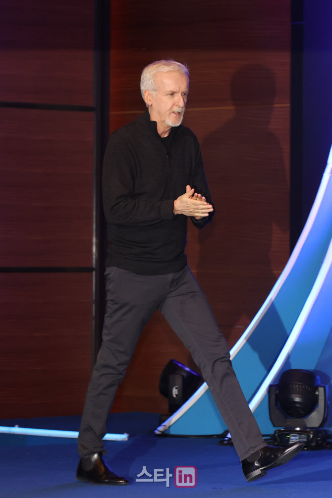 [이데일리 스타in 이영훈 기자] 제임스 카메론 감독이 9일 오전 서울 영등포구 여의도동 콘래드 서울 호텔에서 열린 '아바타2: 물의 길' 내한 기자간담회에 참석해 포즈를 취하고 있다.