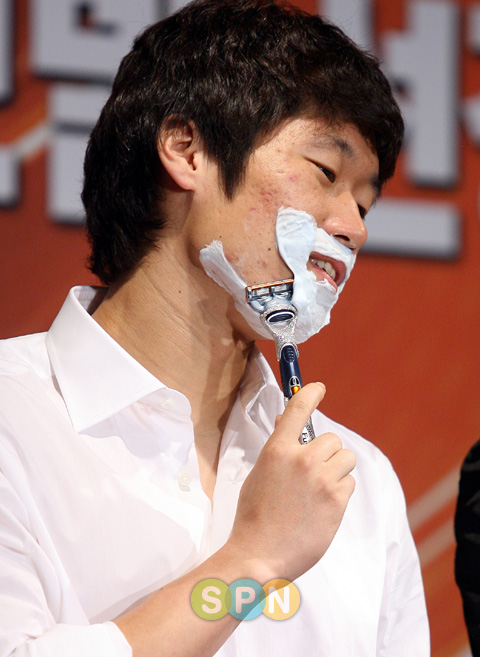 [이데일리 SPN 김정욱기자] 잉글랜드 프리미어리거 박지성이(28. 맨체스터 유나이티드) 22일 오전 서울 한남동 하얏트호텔에서 열린 면도기 브랜드 질레트 '퓨전' 광고 모델 선정 기념식에서 면도 시연행사를 갖고 면도를 하고 있다.