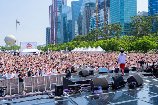 특히, 등장과 동시에 뜨거운 환호를 받은 ‘무한도전’의 레전드 출연자 ‘할마에(염정인)’는 강렬하고 유쾌한 에어로빅 퍼포먼스로 현장을 단숨에 달궜다. 여기에 시영준 성우가 반가운 목소리로 현장 안내 멘트를 전하고, ‘무도’ 단골 박문기 심판이 신호탄을 직접 쏘아올리며 그 시절 감성을 생생하게 되살렸다.