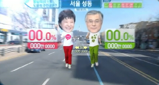 박 차장은 “특히 두 후보가 달리는 CG를 만드는 데는 전국은 아니지만 유력한 후보지는 모두 다녔다”며 “카메라팀이 고생이 많았다. 화면이 흔들리거나 도로 위에 차량이 많아 다시 촬영하는 등 시행착오도 많았다”고 전했다.