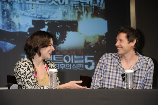 이날 요보비치는 기자회견의 시작과 끝을 한국말로 열고 닫으며 새 영화에 대한 한국 팬들의 관심을 당부했다. “사랑해요, 한국”이라고 인사했다. 이들 부부의 새 영화 ‘레지던트 이블5’는 오는 13일 국내 개봉한다.