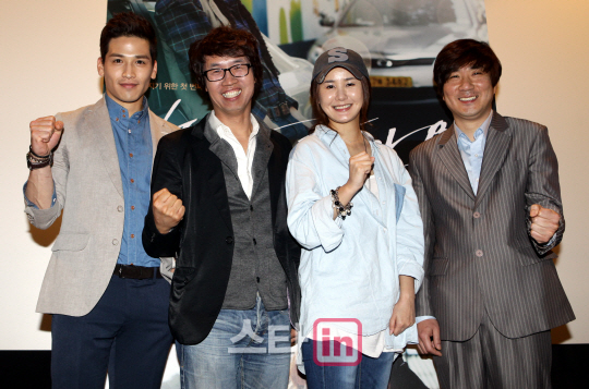 [이데일리 스타in 한대욱] 배우 유건과 진승현 감독, 배우 김라임, 양성철이 이 6일 오전 서울 중구 태평로 스폰지하우스 광화문점에서 열린 영화 '어디로 갈까요?'(진승현 감독 진진엔터테인먼트필름 제작) 언론시사회에서 포토타임을 갖고 있다.