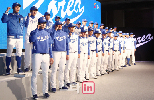 [이데일리 스타in 권욱 기자] 류중일(가운데) 감독을 비롯한 선수단이 15일 오후 서울 역삼동 르네상스호텔에서 열린 2013 월드베이스볼클래식(WBC) 야구 국가대표팀 출정식에서 우승을 다짐하며 파이팅을 외치고 있다.