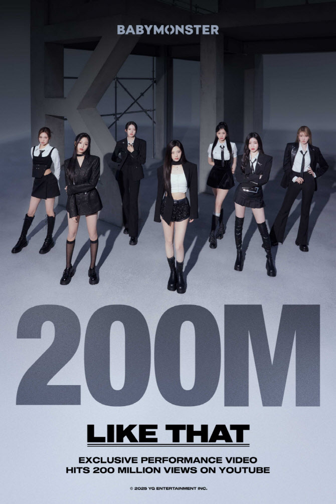 이로써 베이비몬스터는 총 12편의 억대 뷰 유튜브 콘텐츠 중 2억 뷰 이상의 영상만 6편을 보유하게 됐다. 앞서 K팝 걸그룹 데뷔곡 최단 기록을 경신했던 ‘쉬시’(3억) 뮤직비디오와 퍼포먼스 비디오를 비롯해 ‘배터 업’(3억), ‘포에버’(2억), ‘드립’(2억) 뮤직비디오가 같은 조회수를 달성했다.