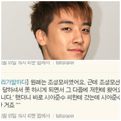 다음의 마이크로 블로그 '요즘'에 남겨 문제가 된 승리의 발언은 "하고 싶은 뮤지컬이 있나"는 질문에 "시아준수보다 뮤지컬 '모차르트'에 먼저 섭외가 들어왔다"고 말한 부분이다. 연예계에서 캐스팅 선후 문제는 상대 배우에 대한 예의상 밝히지 않는 것이 일반적. 편하고 솔직하게 인터뷰를 한다고 시아준수의 실명을 밝힌 것이 시아준수 팬들로부터 빈축을 살 빌미를 마련한 셈이다.