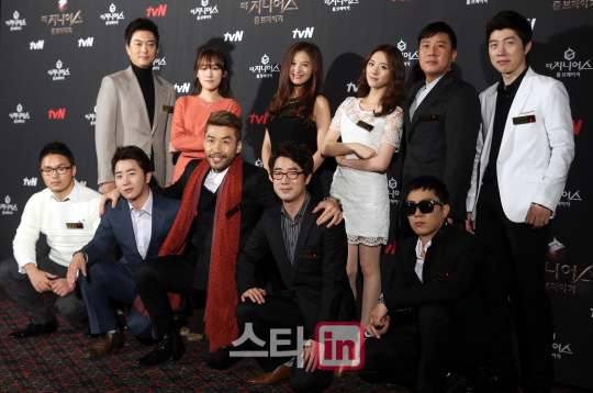 [이데일리 스타in 김정욱 기자] 다양한 직업군의 출연진들이 3일 오후 서울 상암동 CGV에서 열린 tvN '더 지니어스2' 기자간담회에서 포즈를 취하고 있다.