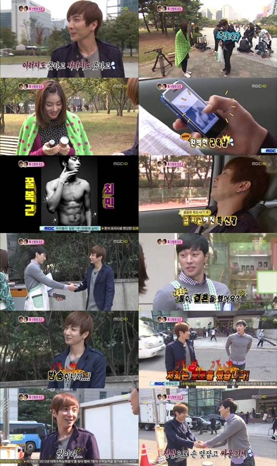 최민의 응대는 까칠했다. 최민은 `우결`에 대해 "방송일 뿐"이라고 대수롭지 않게 여기는가 하면 "우린(강소라와) 이미 뽀뽀도 했다", "강소라를 만난 것도 내가 먼저" 등 민감한 발언으로 이특의 심기를 건드렸다.