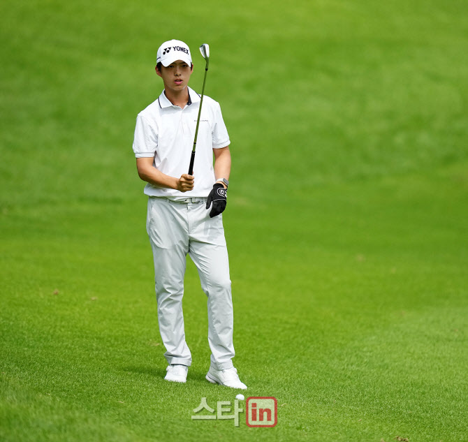 아마추어 남중등부 김도현이 8번홀에서 경기를 치르고 있다.
