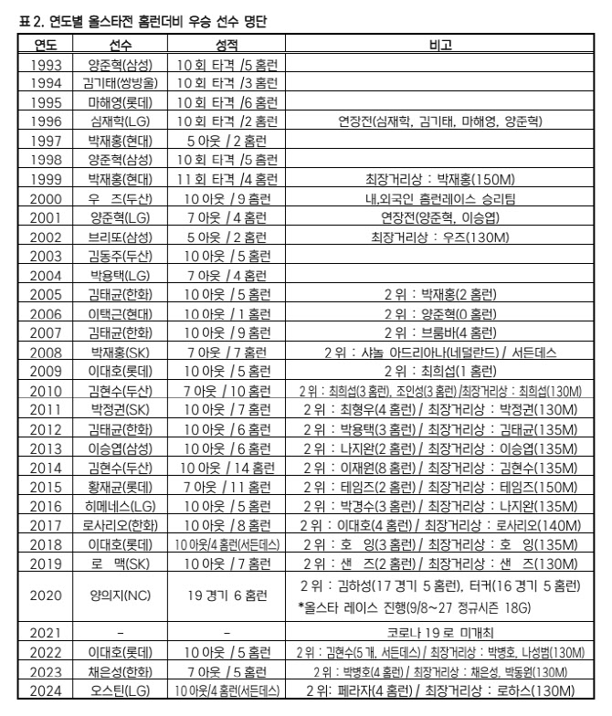 한편, 올해 KBO 프로야구 올스타전은 오는 12일 대전 한화생명 볼파크에서 열린다. 11일에는 홈런더비를 비롯해 퓨처스(2군) 올스타전이 개최된다.