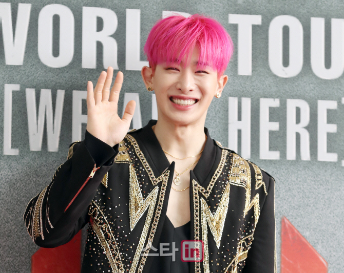 [이데일리 스타in 방인권 기자] 아이돌그룹 몬스타엑스(MONSTA X) 원호가 14일 오후 서울 송파구 올림픽공원에서 열린 '2019 MONSTA X WORLD TOU, WE ARE HERE' IN SEOUL(2019 몬스타엑스 월드투어 '위 아 히어' 인 서울)콘서트 기자회견에서 포토타임을 갖고 있다.