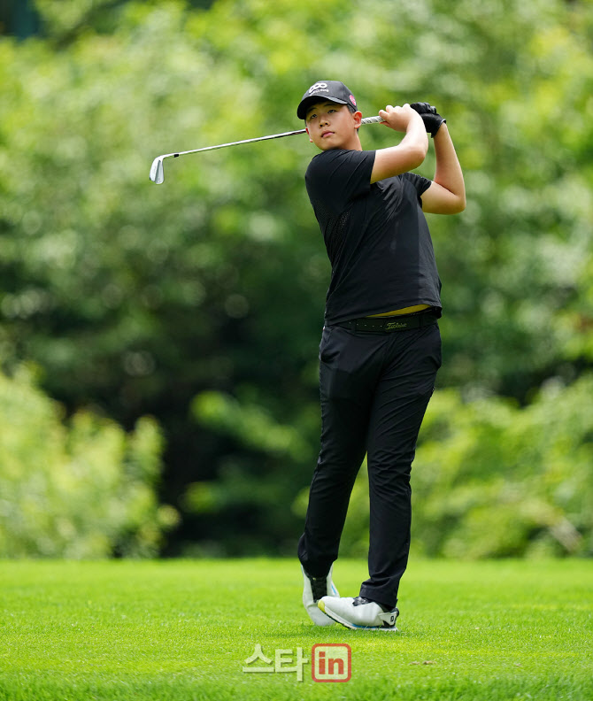아마추어 남중등부 이주안이 7번홀에서 경기를 치르고 있다.