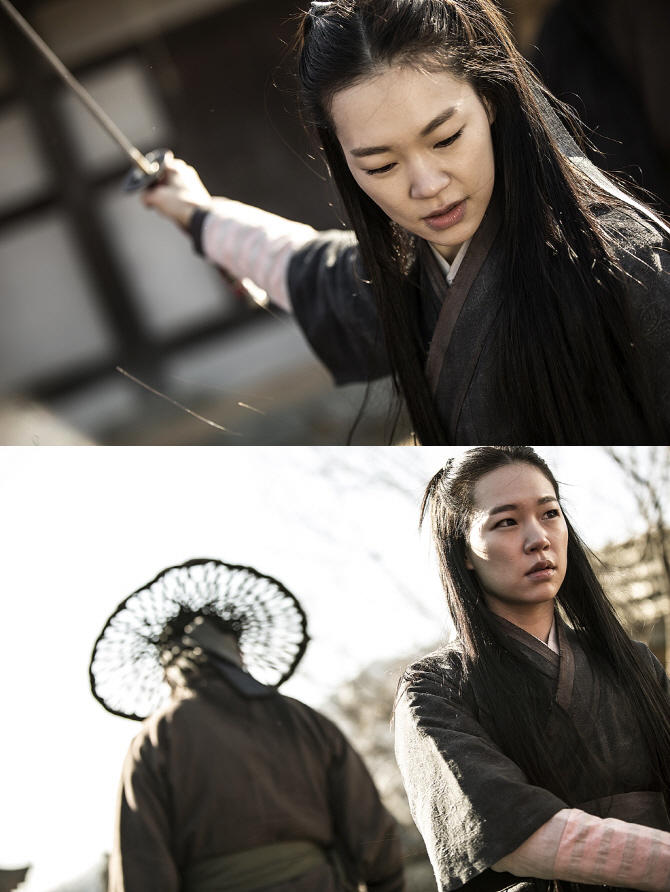 무엇보다 눈길을 끄는 것은 척사광 손에 들려 있는 커다란 칼이다. 그녀는 강인하고도 매서운 표정으로 금방이라도 칼을 휘두를 듯한 모습이다. 그런 그녀의 뒤에는 정체를 알 수 없는 무사가 등을 보인 채 서 있다. 척사광이 칼을 높이 든 이유는 무엇일지 궁금증을 더한다.