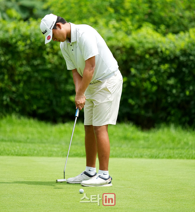 아마추어 남고등부 김성찬이 7번홀에서 경기를 치르고 있다.