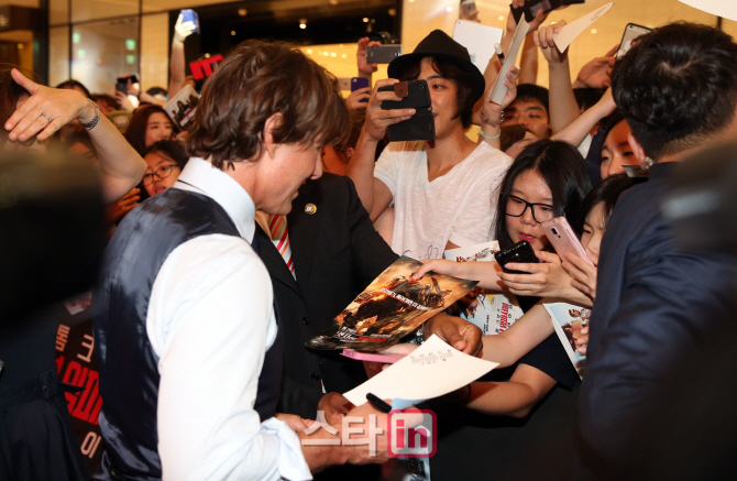 [이데일리 스타in 방인권 기자] 할리우드 스타 톰 크루즈가 30일 오후 서울 송파구 잠실동 롯데월드몰에서 열린 영화 '미션임파서블 로그네이션' 레드카펫 행사에서 팬들에게 사인을 해주고 있다.
