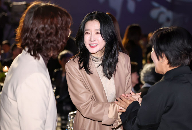 배우 이영애가 23일 서울 강덕구 고덕동 스테이지28에서 열린 제15회 아름다운예술인상 시상식에서 참석자들과 인사를 나누고 있다.(사진=뉴스1)