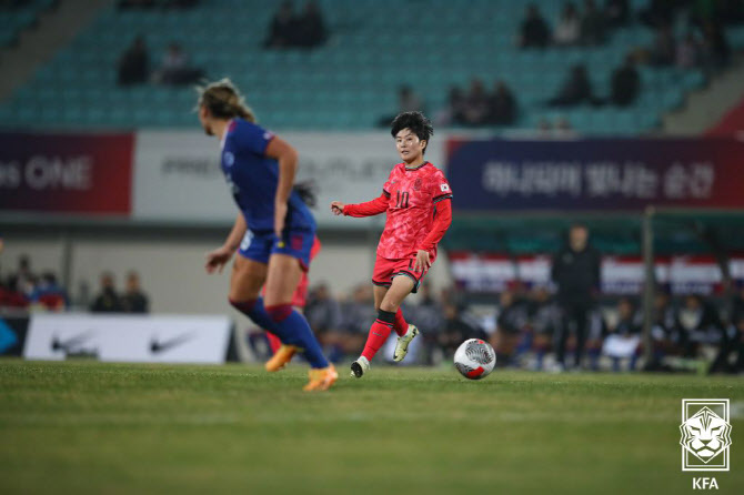 이날 한국은 지소연(시애틀 레인), 박수정(울산과학대), 문은주(화천 KSPO), 이영주(레반테), 김신지(AS로마), 김혜리(우한), 장슬기(경주한수원), 임선주, 고유진(이상 현대제철), 신나영(렉싱턴), 김민정(현대제철·GK)이 선발로 나선다.