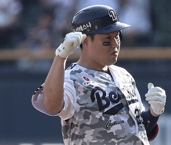이어 양의지도 나균안으로부터 ‘백 투 백’ 좌월 1점 홈런을 뽑았다. 양의지는 이 홈런으로 역대 12번째로 12시즌 연속 10홈런 주인공이 됐다.