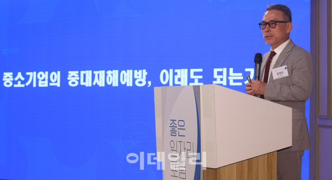 [이데일리 이영훈 기자] 함병호 한국교통대 화학물질특성화대학원 교수가 26일 서울 중구 KG타워에서 열린 '2025 좋은 일자리 포럼'에서 '중소기업의 중대재해 예방, 이래도 되는가' 주제로 발표하고 있다.